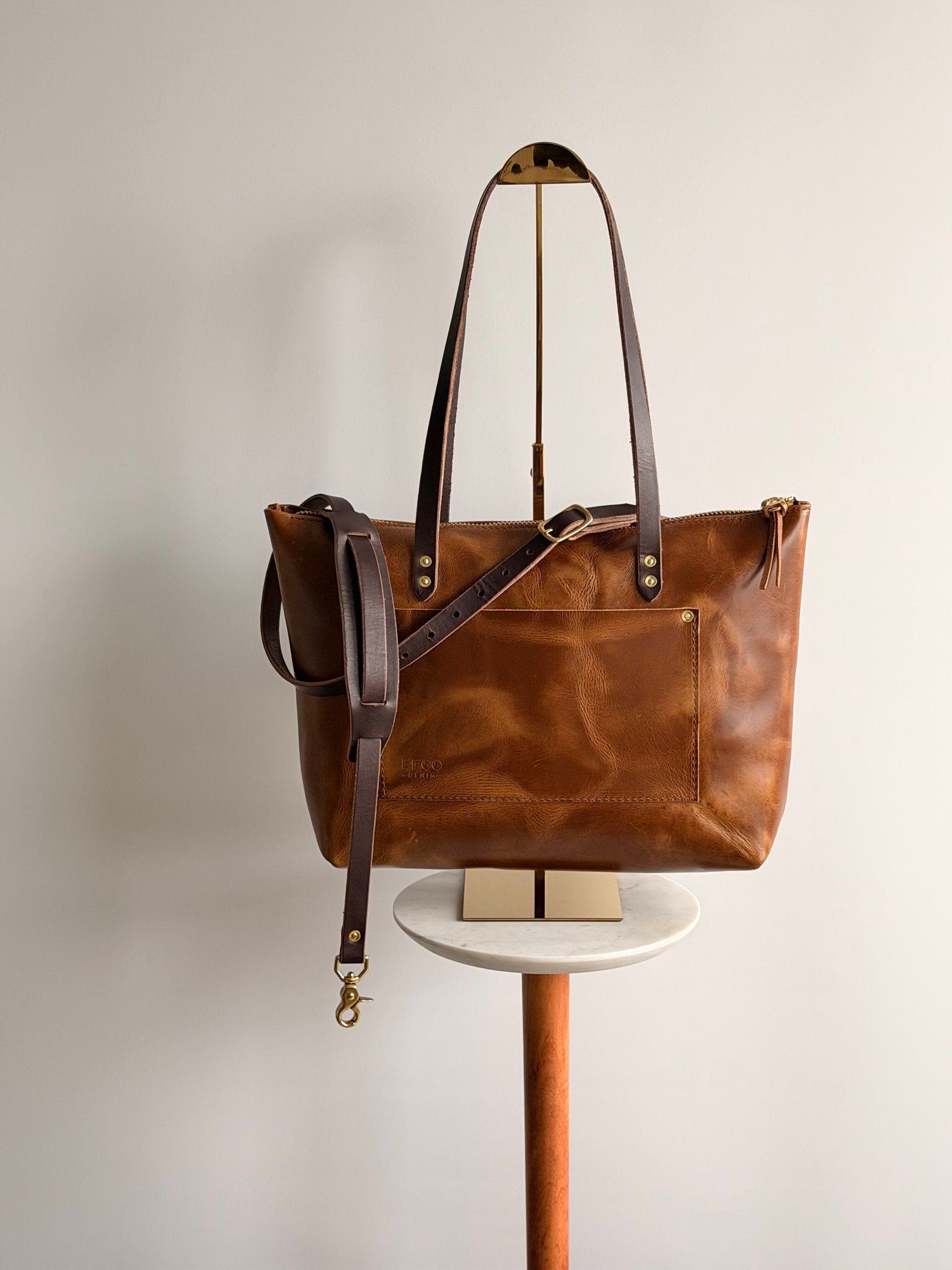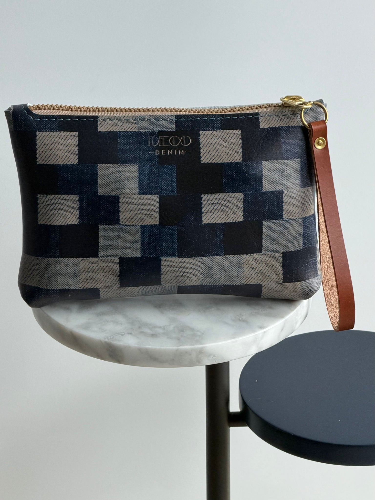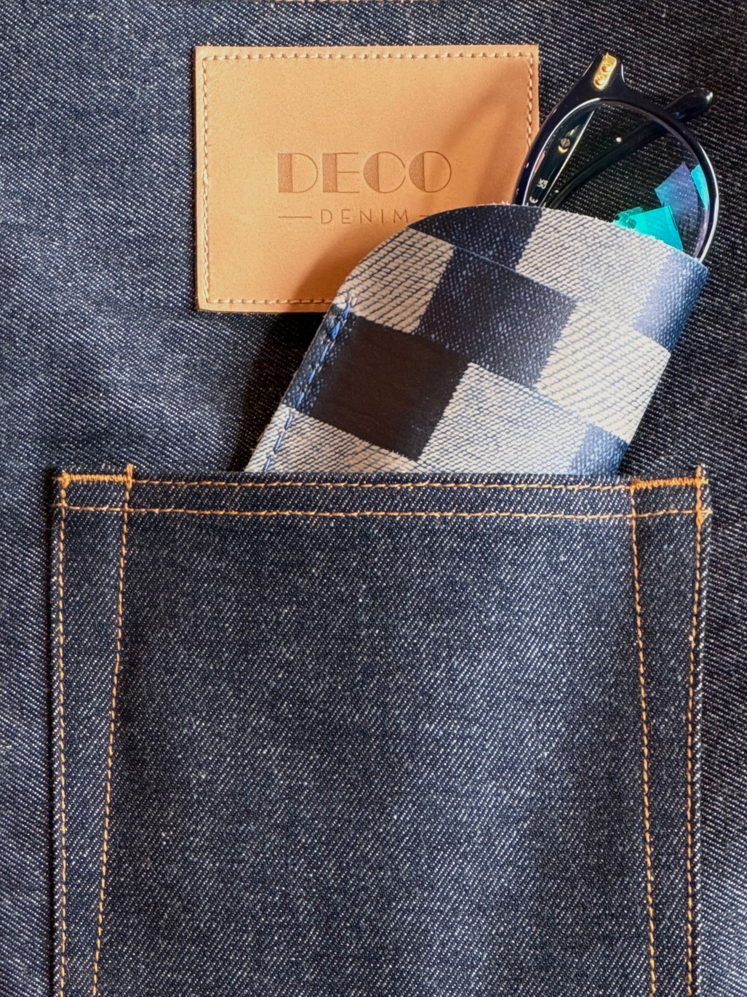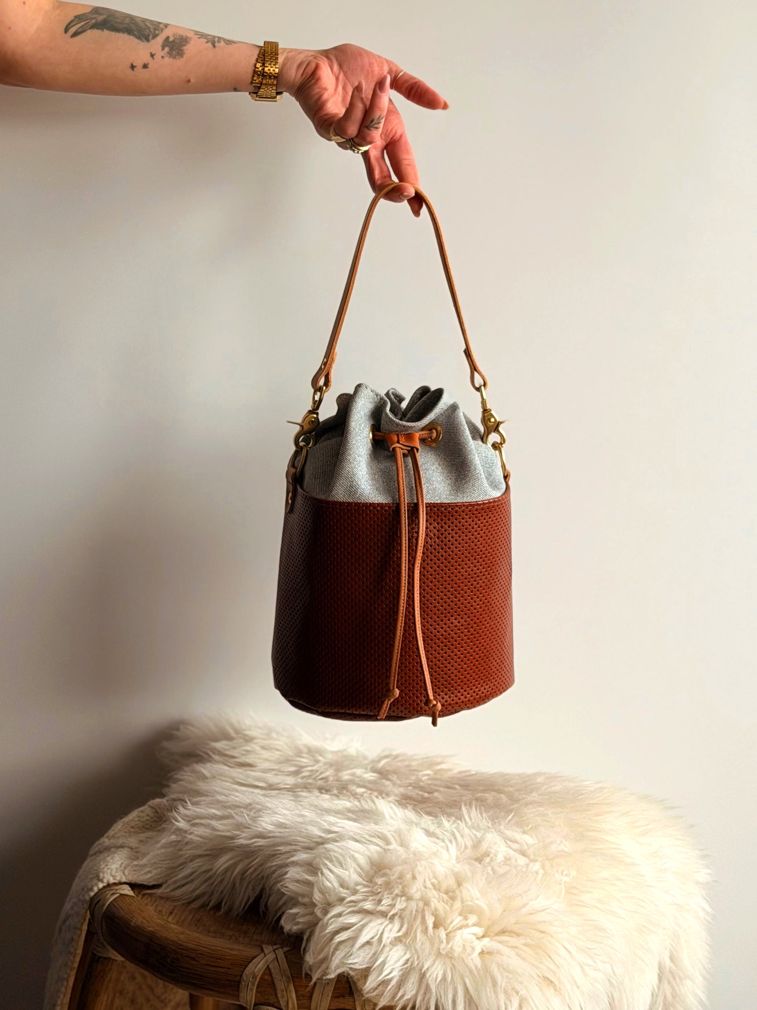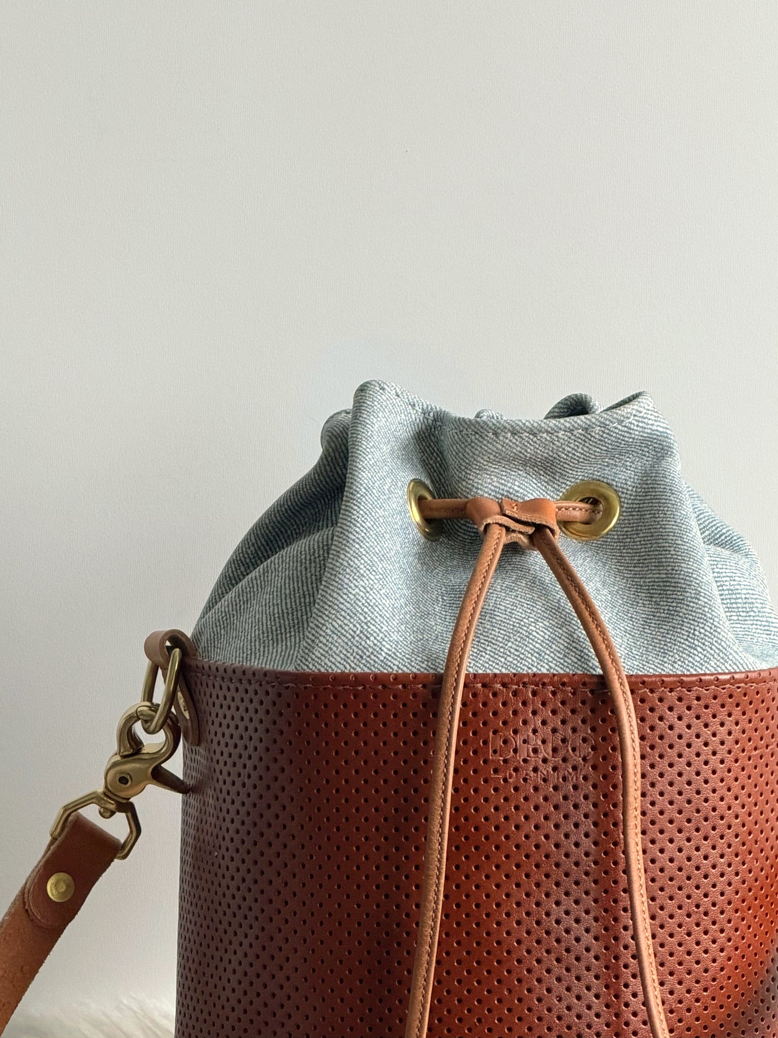 Cylinder Bucket — Denim Print x Perforated Ginger Leather