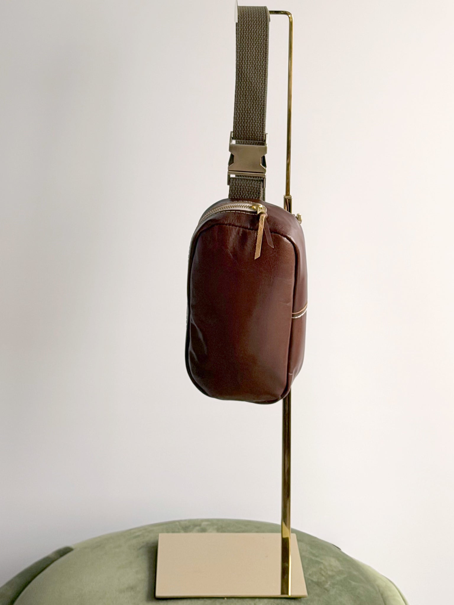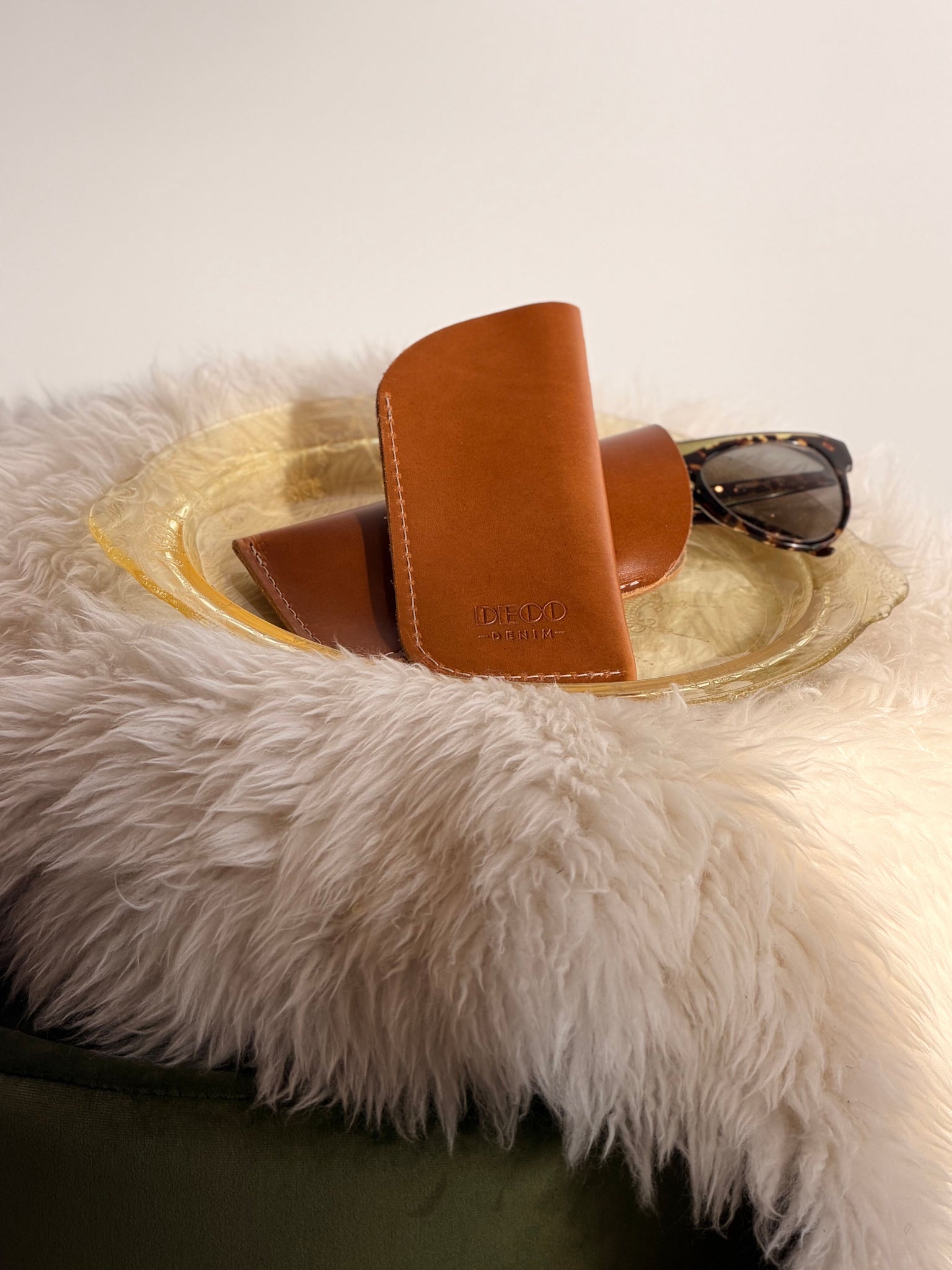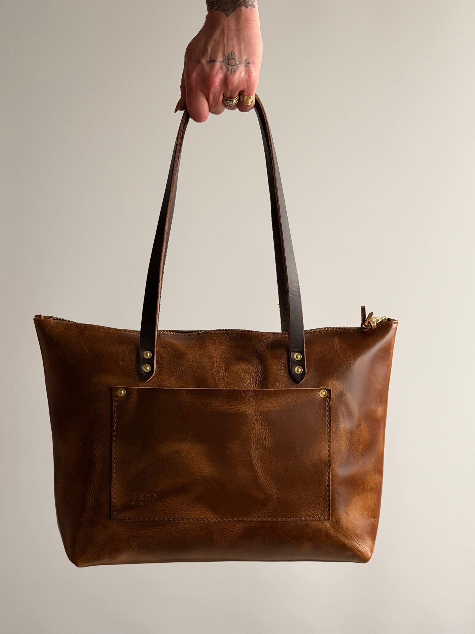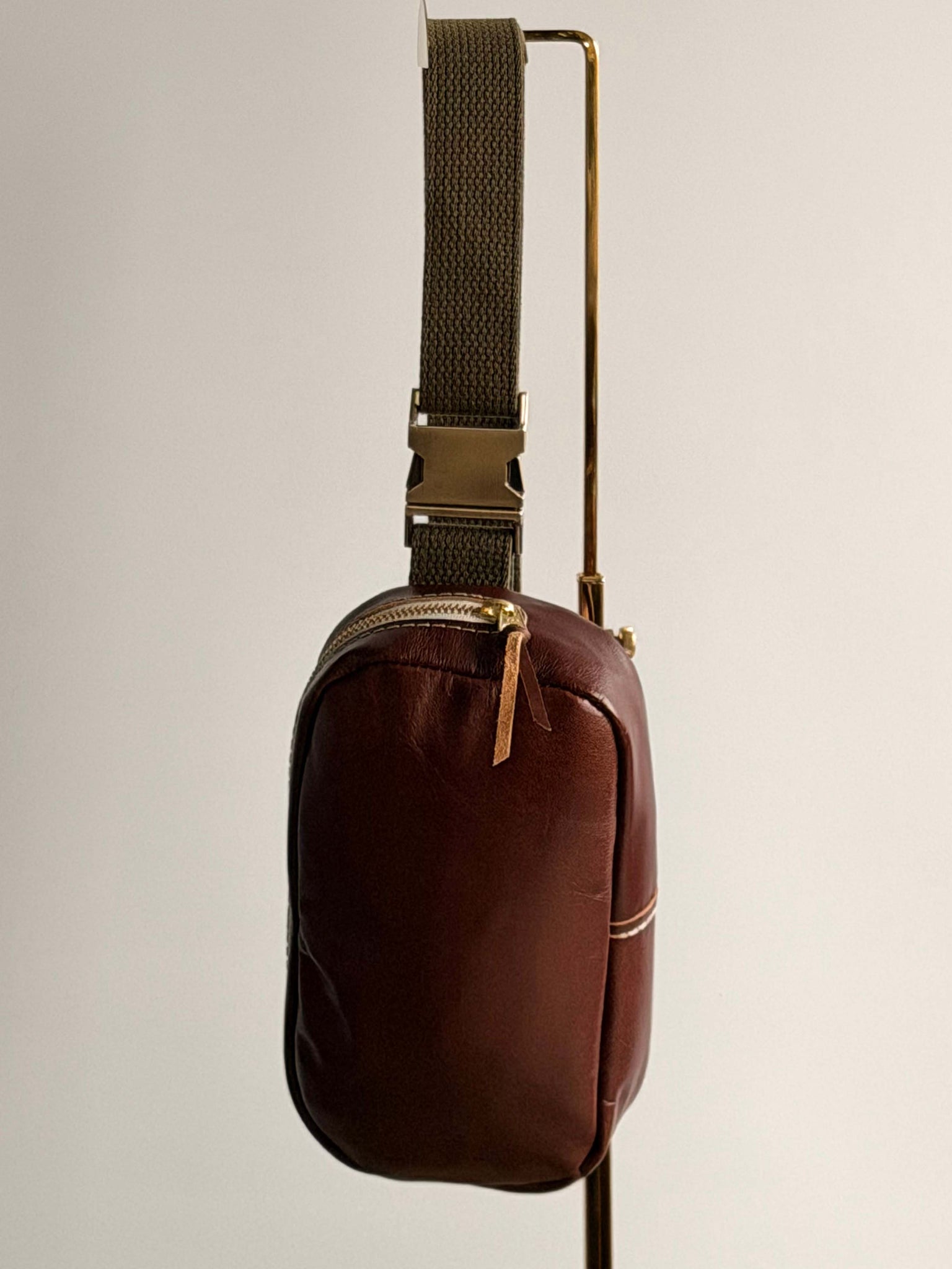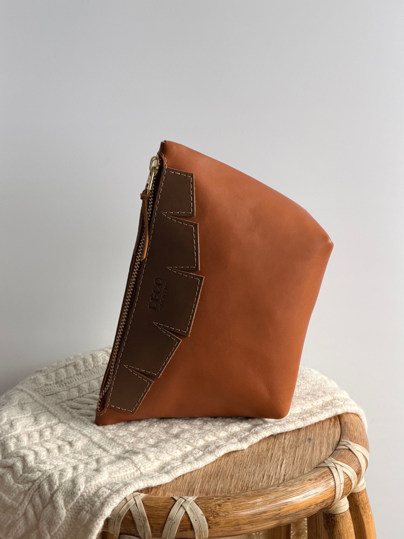 Cylinder Bucket — Denim Print x Perforated Ginger Leather