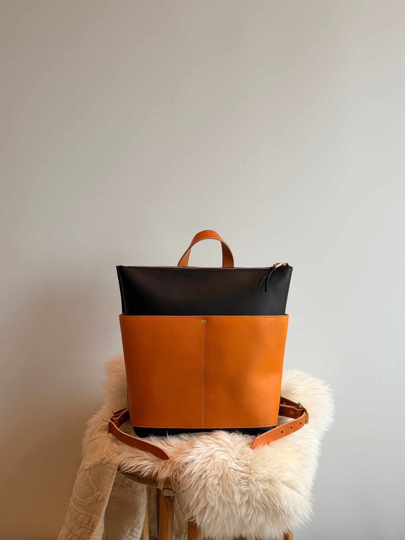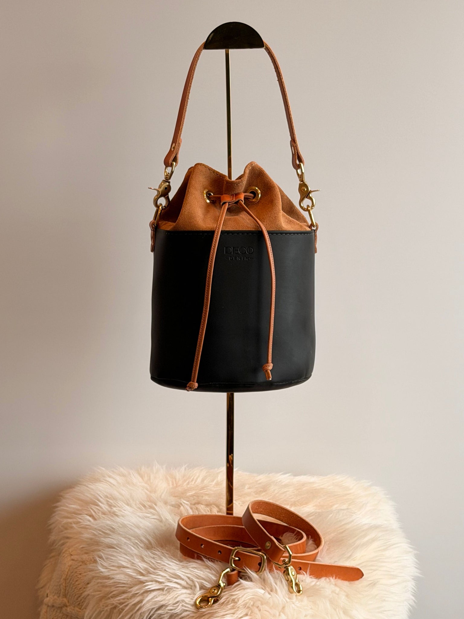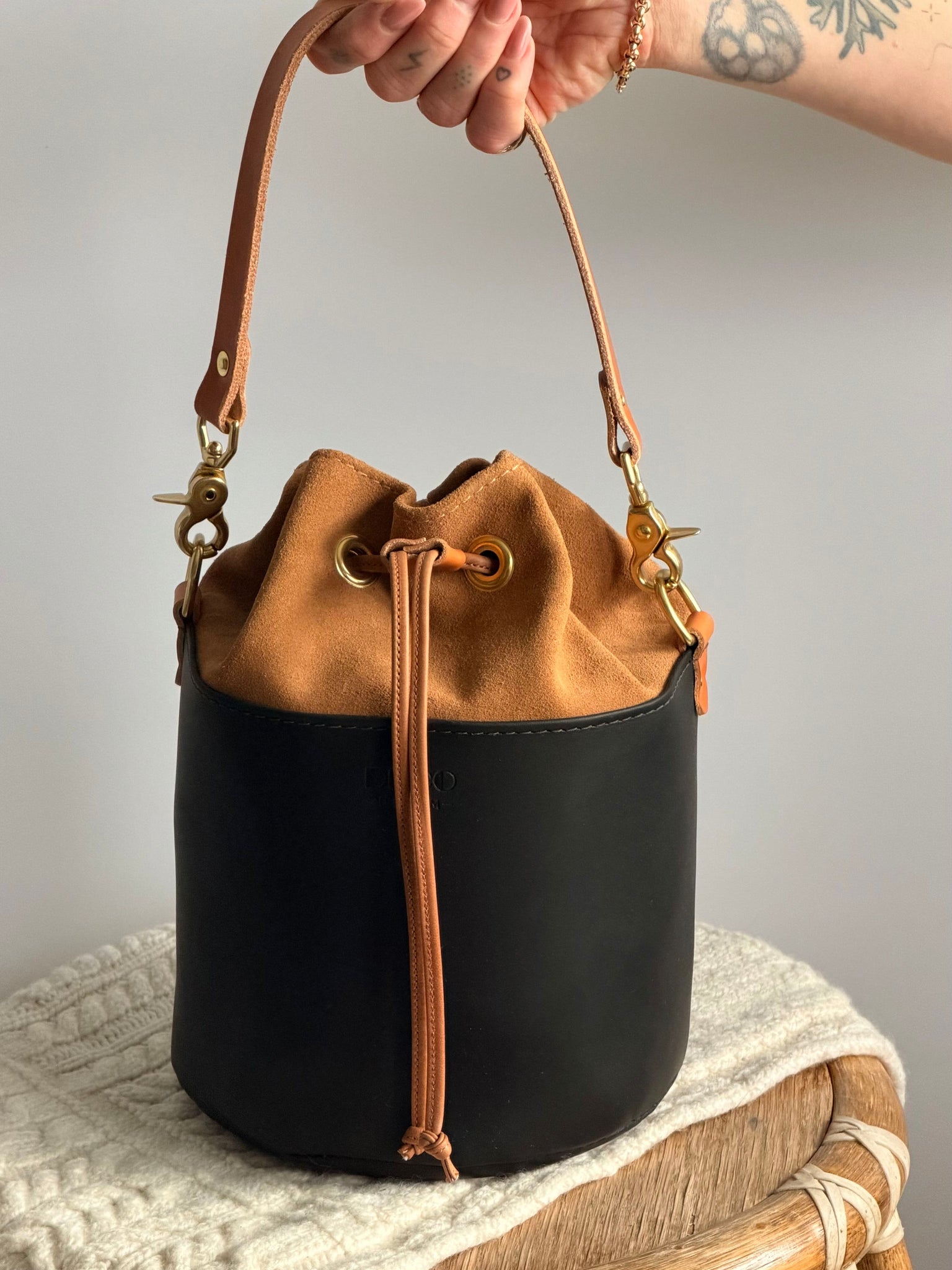Cylinder Bucket — Raven Black Leather x Tan Suede