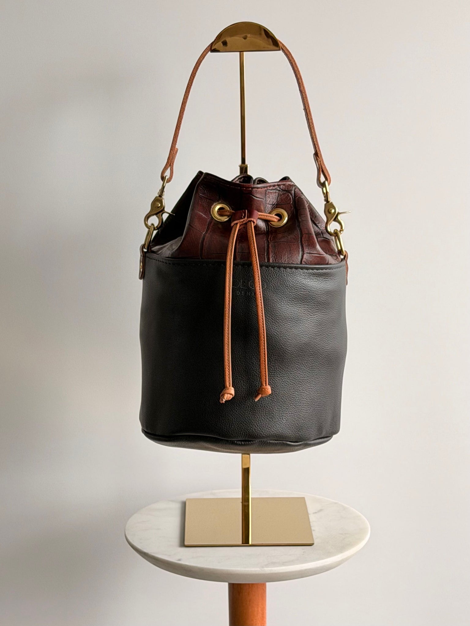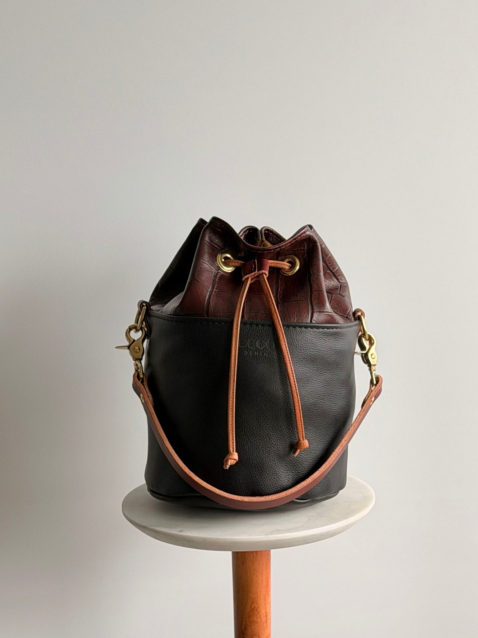 Cylinder Bucket — Oxblood Croc Top x Raven Black Leather