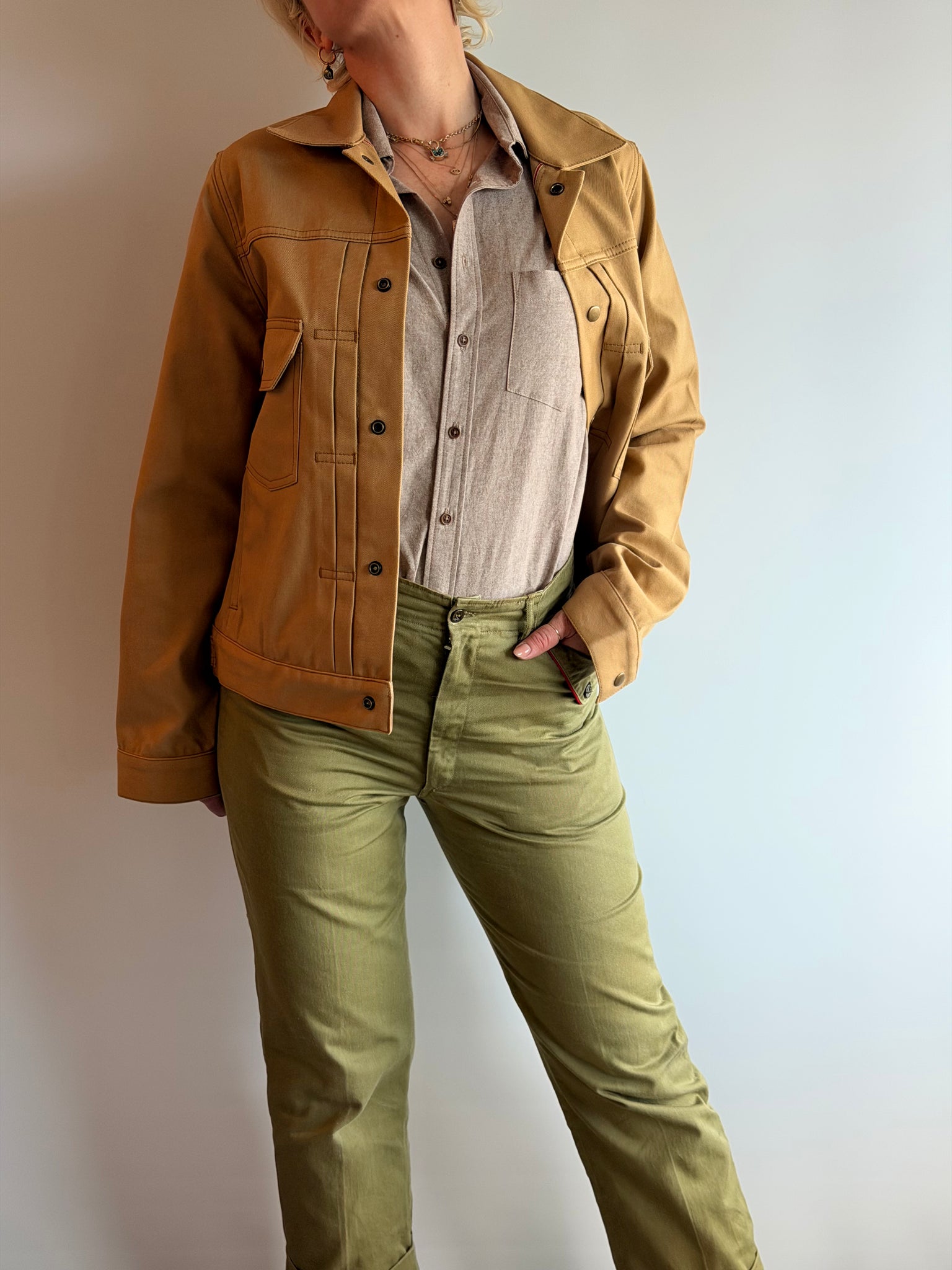 Lightweight Selvedge Khaki Trucker Jacket