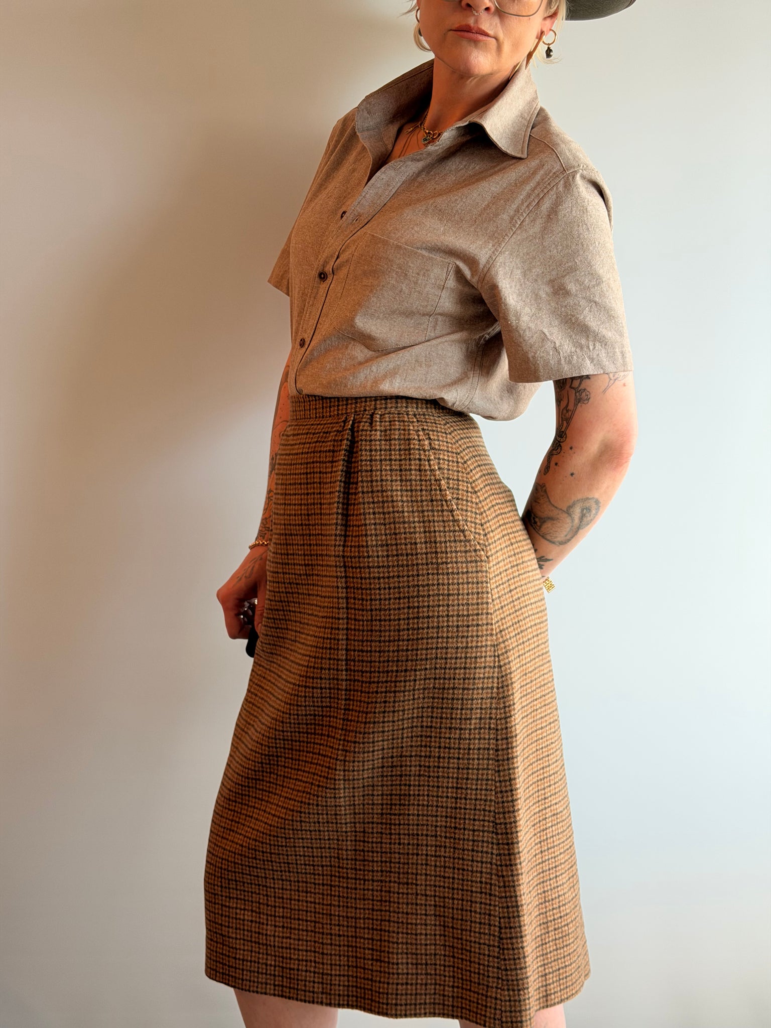 Khaki Gingham S-Sleeve Button Down Shirt